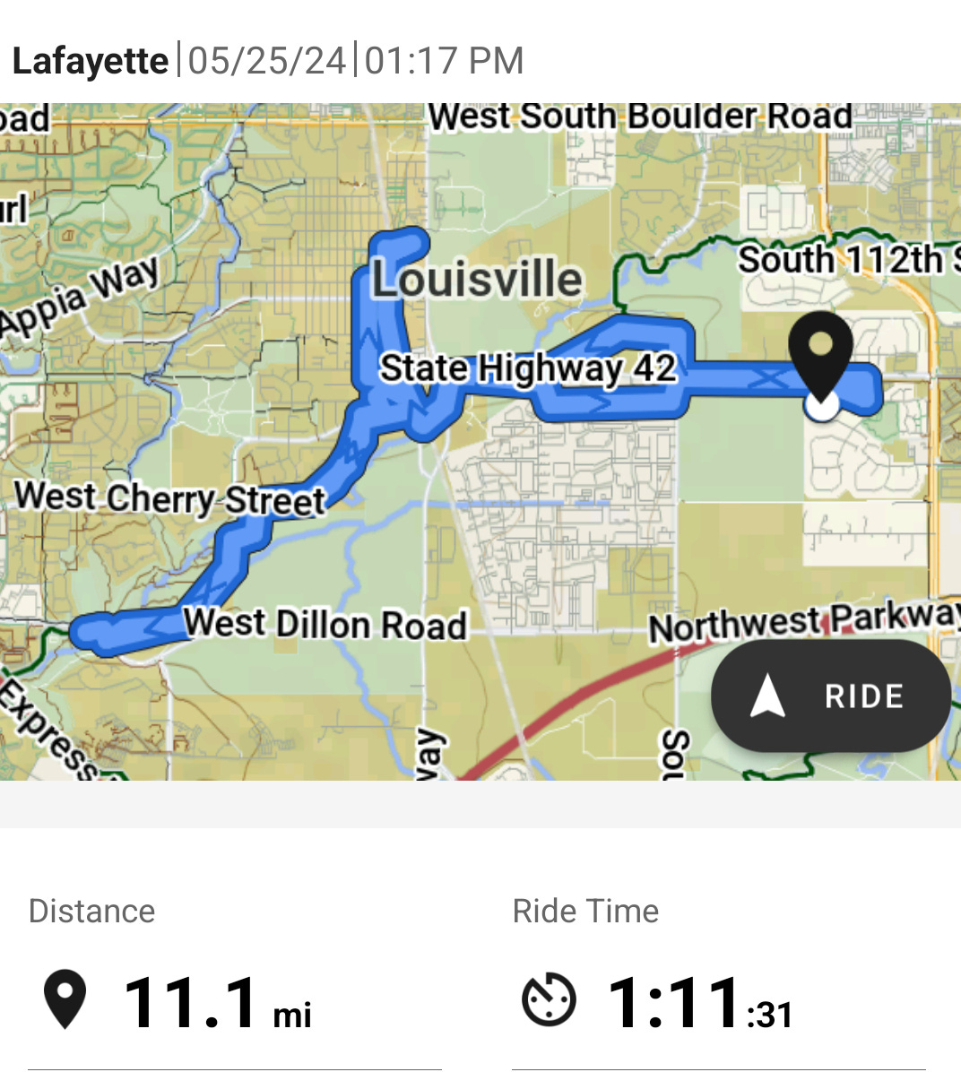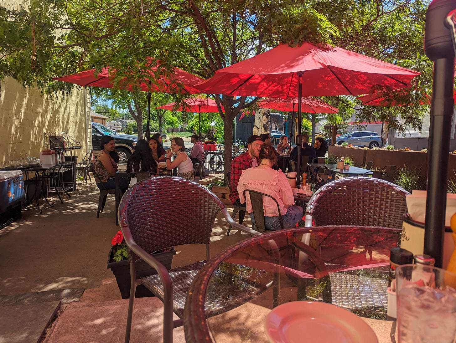 Our inaugural ride was over to the neighboring town of Louisville. We rode from the house due west along the Coal Creek Trail. Once we hit downtown we decided to stop for a cold beverage. We enjoyed our icy drinks at Ziggi’s from the open window that overlooks the bike rack. I had brought my chain lock along, so there was really no concern; the open window is just very appealing on a nice day.