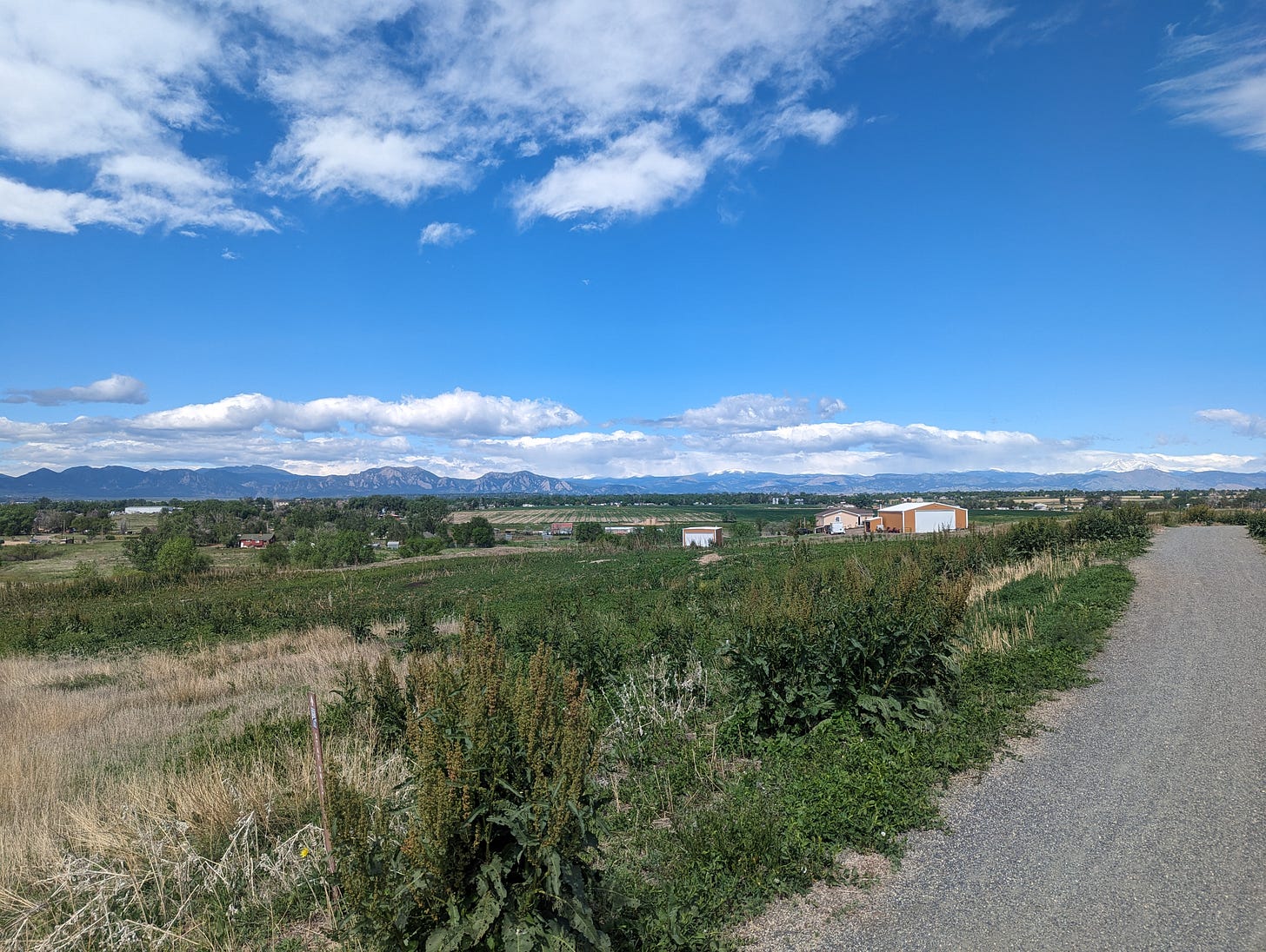 Neither of us had been on this stretch of trail before. We started out by crossing Highway 287 just outside of our neighborhood. It would be great if there was an underpass here, but until that day we have to use the pedestrian crosswalk at the intersection. There’s a traffic light, so it’s fairly safe. Once across, we made our way to the Rock Creek Trail just east of the hospital. We headed north on that trail, which is a combination of gravel and paved. It’s a very well maintained trail and has pretty great, albeit far-off, views of the mountains to the west. If you live nearby and haven’t tried this trail, do it!