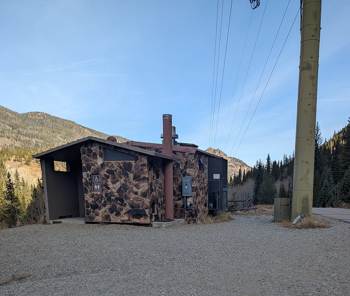 After spending a couple days in Frisco and becoming somewhat acclimated to the high altitude, we attempted a ride I’d long been looking forward to. Let me back up. Two summers ago we had planned a camping trip near Leadville, Colorado only to have to cancel due to wildfires. On that trip, I had mapped out a ride from Frisco to the top of Vail Pass on a paved trail that parallels I-70. On the outbound leg heading southwest, it’s a fairly viciously uphill, but coming back is mostly a easy downhill coast. With our newly purchased ebikes, we had the confidence to try it. However, nature had other plans and we ended up switching gears and camping (and riding) at Hermit Park near Estes Park instead.