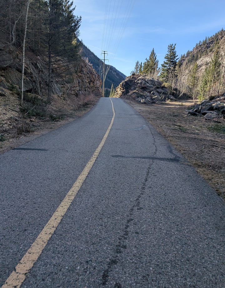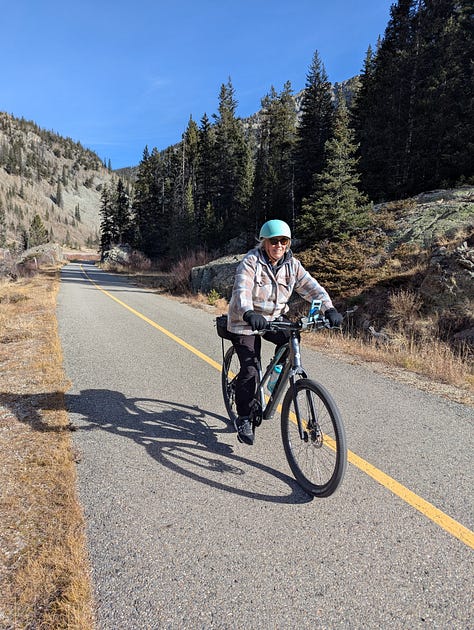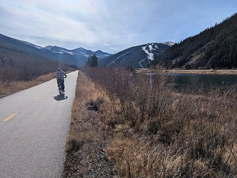 Speaking of breathtaking, this trail heads uphill all the way to Copper Mountain, but it’s fairly gradual most of the way. There are no huge uphill battles. The total elevation gain was around 700 feet. I did engage my e-bike motor a few times to take the edge off. It should be mentioned that only Class One e-bikes are allowed on this trail. It’s a shared path with walkers.