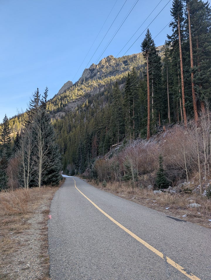 We only passed two other cyclists and one walker the entire time we were on the trail. That’s definitely owing to the season as I’m sure the trail is much busier in the warmer summer months. By the time we reached Frisco, we were burning up and had to shed layers.