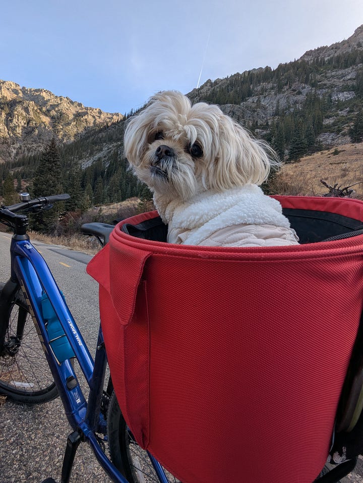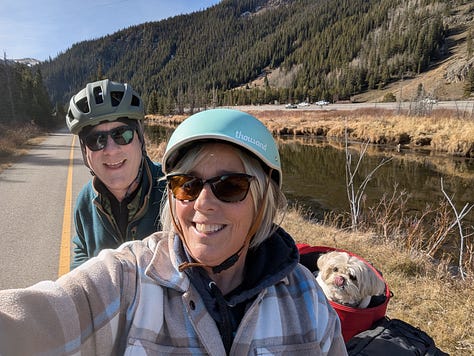 Very adventurous to ride in the mountains in mid-November!! Penny doesn’t looked as thrilled as you and Greg, though! 😂