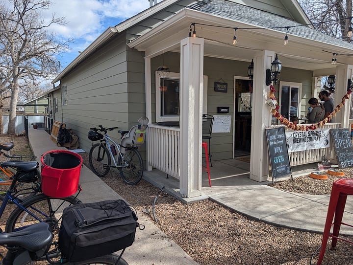Suffice it to say, it’s been a weird “winter”. But now it’s time to welcome the longer days and greener vistas and embrace the opportunities to be outdoors. We’ve done a few short bike rides here and there during some of the warmer days, but nothing too noteworthy. We had a fun little ride around Louisville last weekend. As is often the case, we ended up at a local establishment.