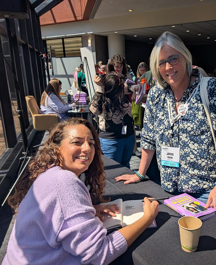 The workshop also had illustrious and engaging keynote speakers at every meal. They were all inspirational, doling out their collected wisdoms and fascinating paths to writing success. A highlight for me was Sona Movsesian, cohost of the podcast “Conan O’Brien Needs A Friend”. I ended up buying two copies of her book The World’s Worst Assistant - one to add to my humor collection and one for my son who also enjoys the podcast. Of course, having her sign them was a memorable moment for me - she was so gracious and hilarious in person. I can see how she’s gotten as far as she has!